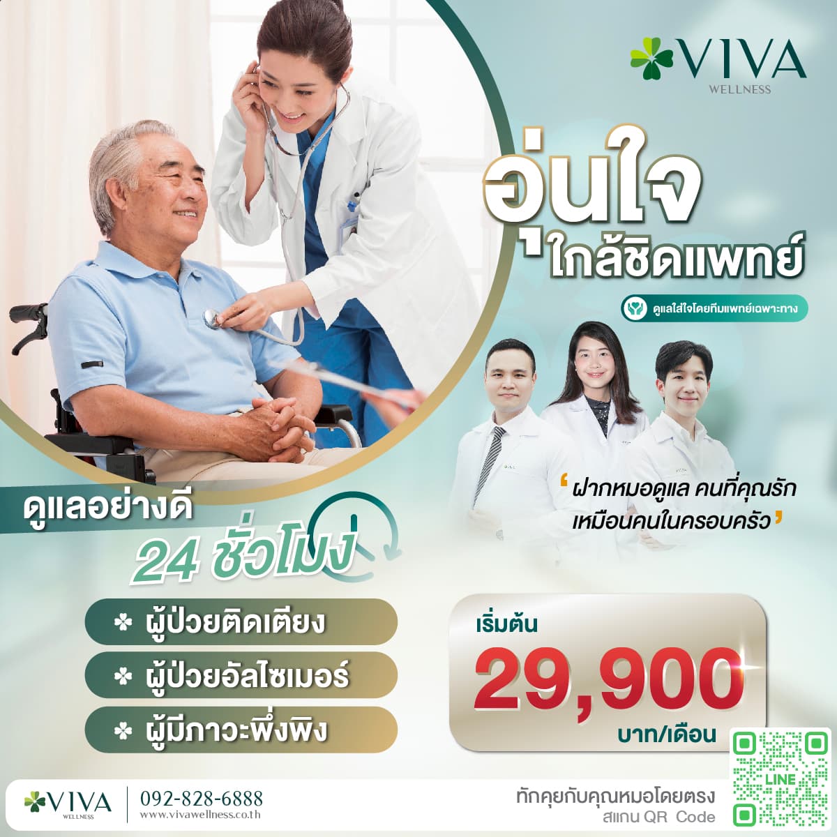 “ คุณแม่ของเราเป็นอัลไซเมอร์ระยะเริ่มต้นมานานกว่า 10 ปี แต่ช่วงหลังมานี้ หลังจากที่คุณพ่อ ที่เคยเป็นคนดูแลหลักท่านจากไป อารมณ์ของคุณแม่เริ่มเปลี่ยนไป ท่านก้าวร้าวขึ้น และบางครั้งก็สับสนจนเราควบคุมไม่ไหว เราพยายามทำทุกวิถีทาง ทั้งการดูแลกันเองในครอบครัวและการจ้างผู้ดูแลถึงสองคนเพื่อช่วยแบ่งเบาภาระ แต่ยิ่งเวลาผ่านไป อาการของท่านก็หนักขึ้น การดูแลผู้ป่วยสมองเสื่อมเป็นเรื่องที่หนักมากกว่าที่เราคาดคิด ไม่ใช่แค่เรื่องความเจ็บป่วยทางกาย แต่รวมถึงอารมณ์ การกิน การใช้ชีวิตประจำวันที่ต้องช่วยเหลือแทบทุกอย่างในที่สุด เราตัดสินใจพาคุณแม่มาที่ ศูนย์ดูแลผู้สูงอายุ วีว่า ตามคำแนะนำของญาติที่เคยรักษากับ คุณหมอมิ้นท์ และนี่เป็น หนึ่งในการตัดสินใจที่ดีที่สุดของครอบครัวเรา”
